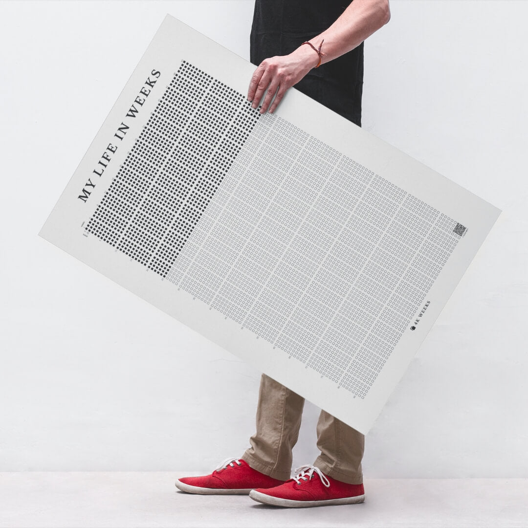 It's a very aesthetic poster made of great material. It comes with your lived weeks already filled in, which is highly pleasing. I chose the small, 88-year version, and every detail on the poster is high-resolution. Delivery took 6 days, but it was worth the wait and made it even more exciting when it finally arrived.